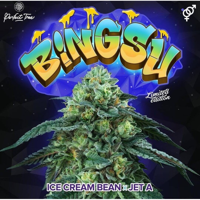 La hembra Ice Cream Bean utilizada en el cruce contiene unos marcados e intensos sabores a Blue Sherbert (Blue Cookies x Sunset Sherbert), una selección genética de fuertes aromas. El macho Jet A (Gelato#33 x Tina) aporta terpenos a gas cremoso producidos por la complejidad de su linaje gelato#33. Bingsu no es una variedad afrutada. Los matices organolépticos de esta variedad y la calidad de la resina que produce la hacen perfecta para la realización de todo tipo de extracciones con resultados que son puro fuego para los paladares más exigentes.